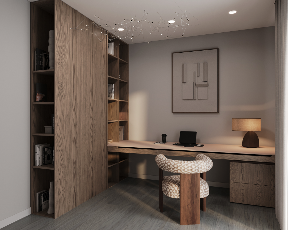 Наша главная задача была создать Пространство как для комфортного отдыха, так и для работы, где ничего не отвлекает. Также у заказчика есть маленький ребенок, поэтому была создана детская для будущего школьника.
